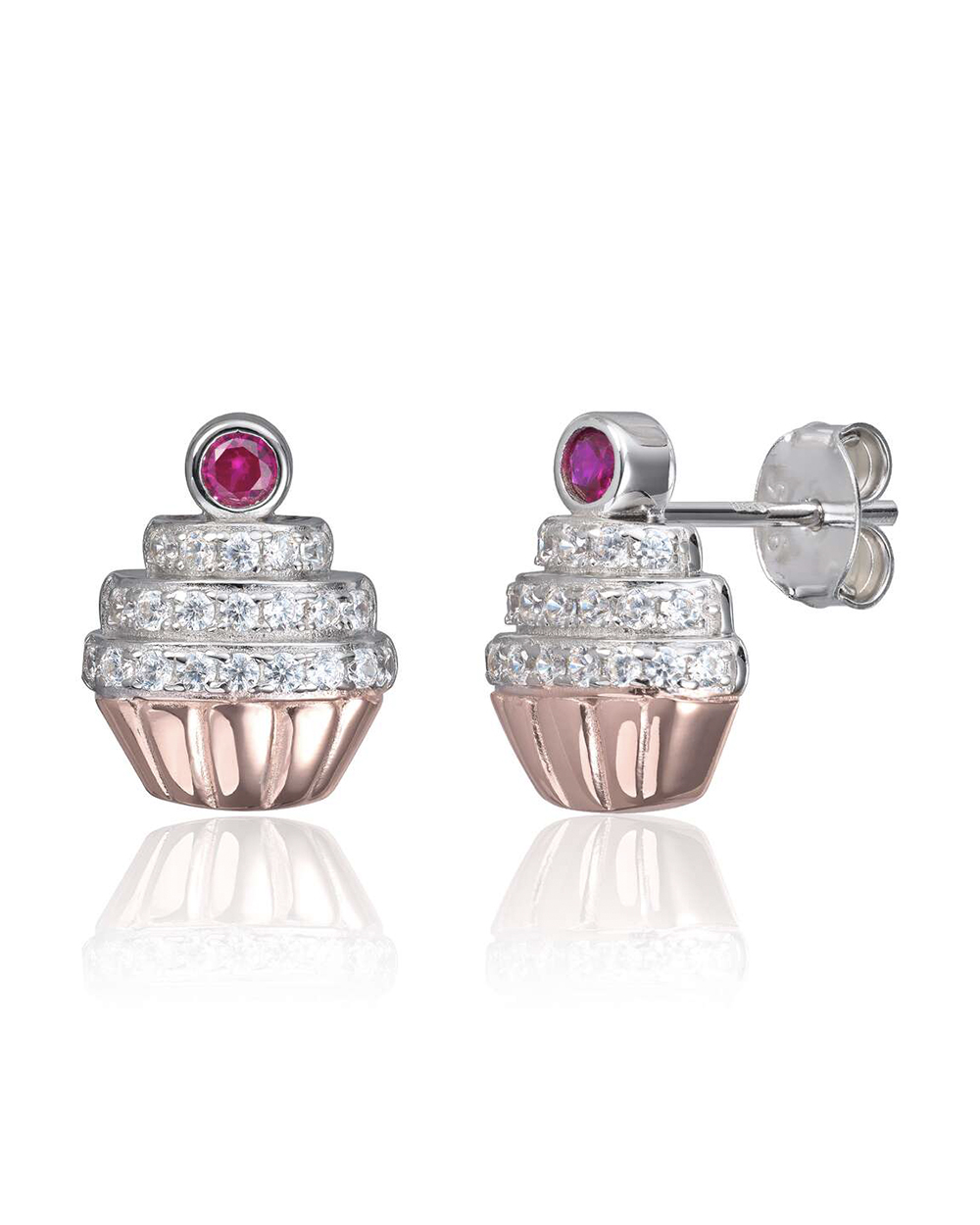 Ørepynt Cup cake med cirkoner i sølv rhodinert