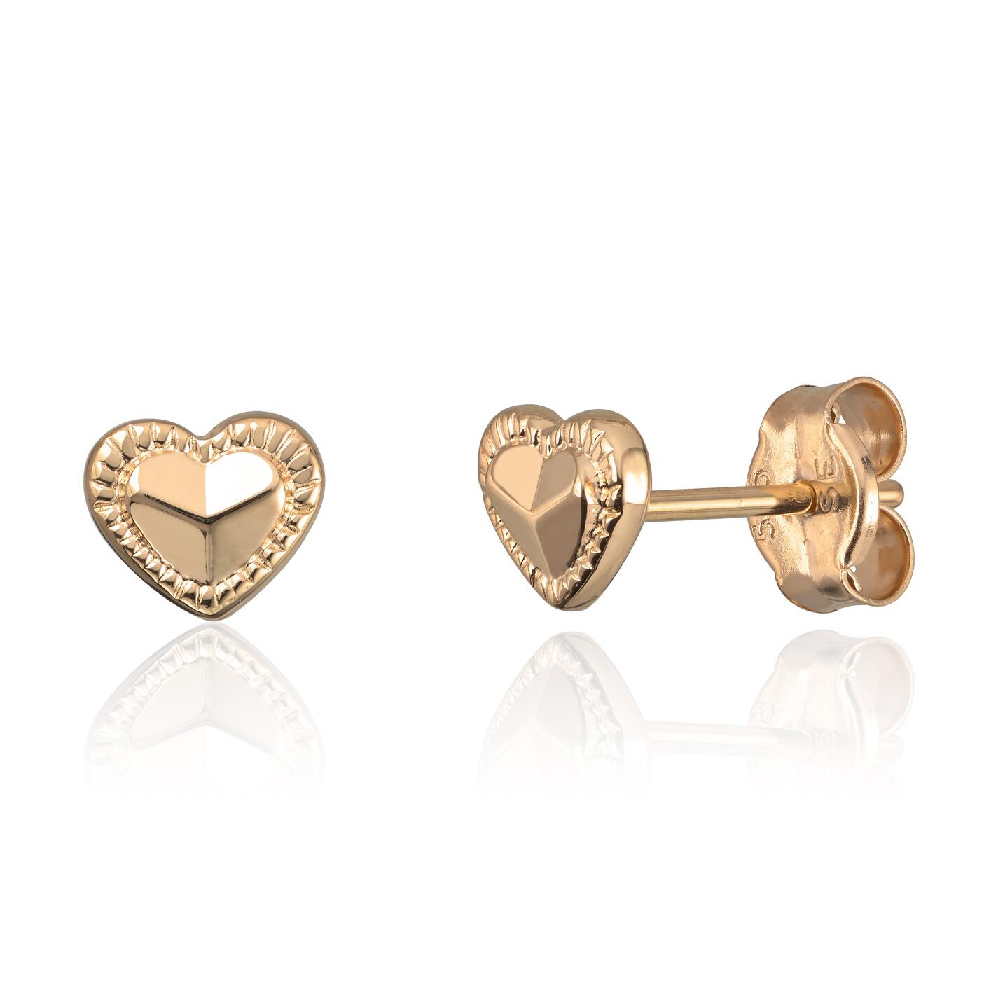 Små og søte øredobber i 14 karat gull formet som hjerter, med en høyde på 4,7 mm.