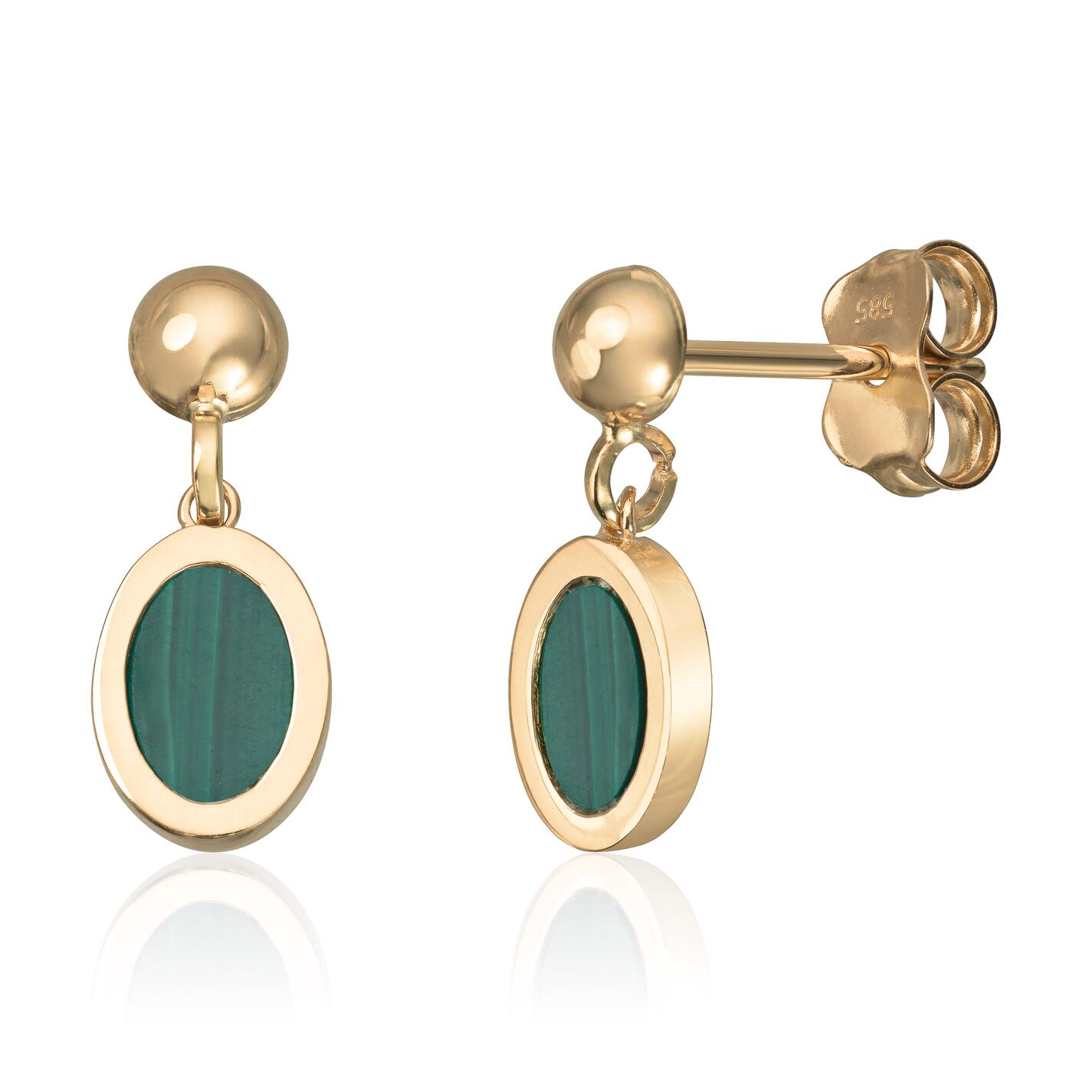 Stilfull ørepynt i 14 karat gult gull med dypgrønn malakitt som gir smykket et unikt og levende uttrykk. Den naturlige steinen har et vakkert spill i fargen som gjør hvert par litt forskjellig.