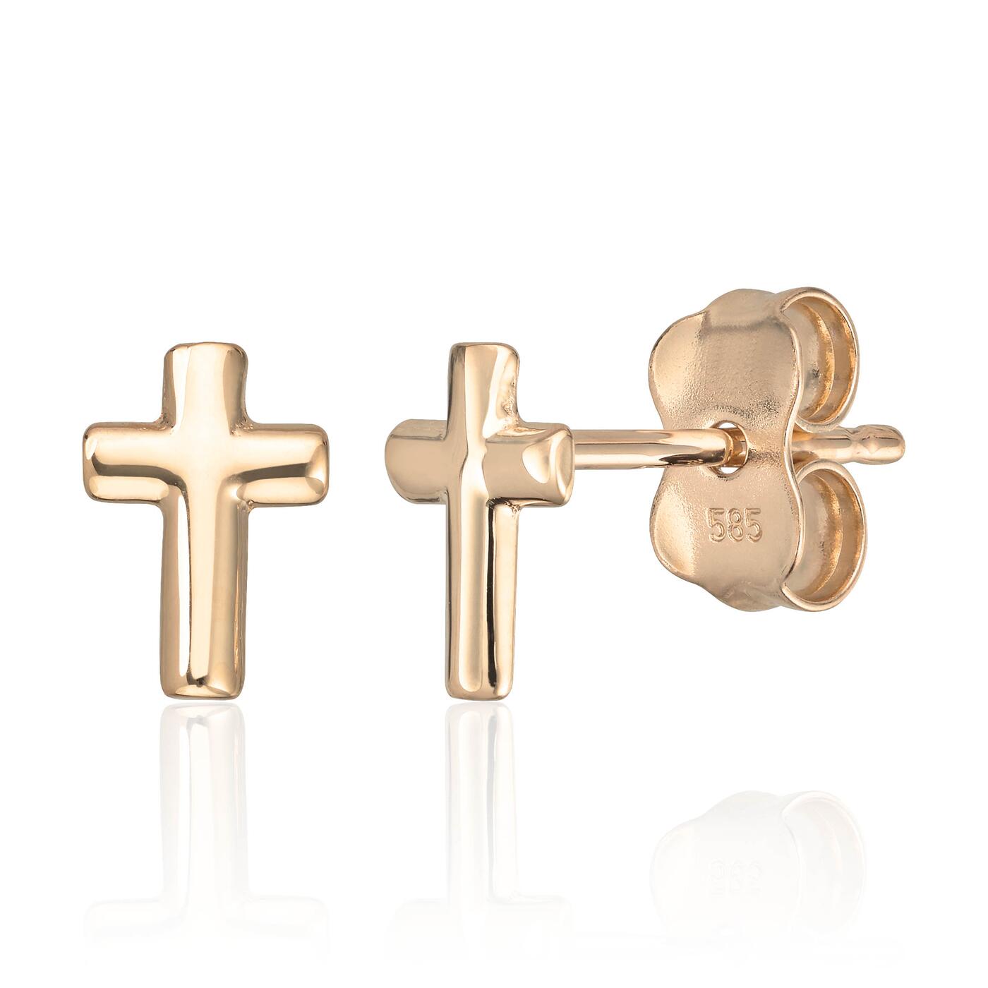 Delikat ørepynt formet som kors i 14 karat gult gull. Den blanke overflaten og nette størrelsen gjør dem til et symbolrikt og elegant smykke for både hverdag og spesielle anledninger. En vakker gave med personlig betydning.