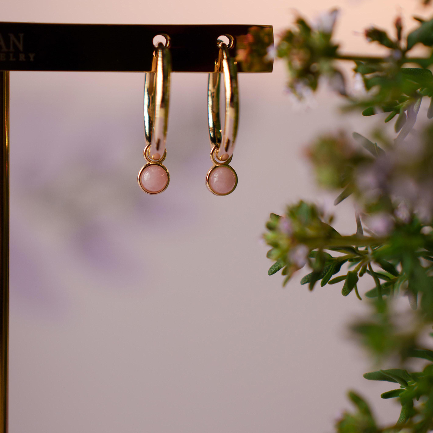Ørering i sølv med rosa opal KJÆRLIGHET