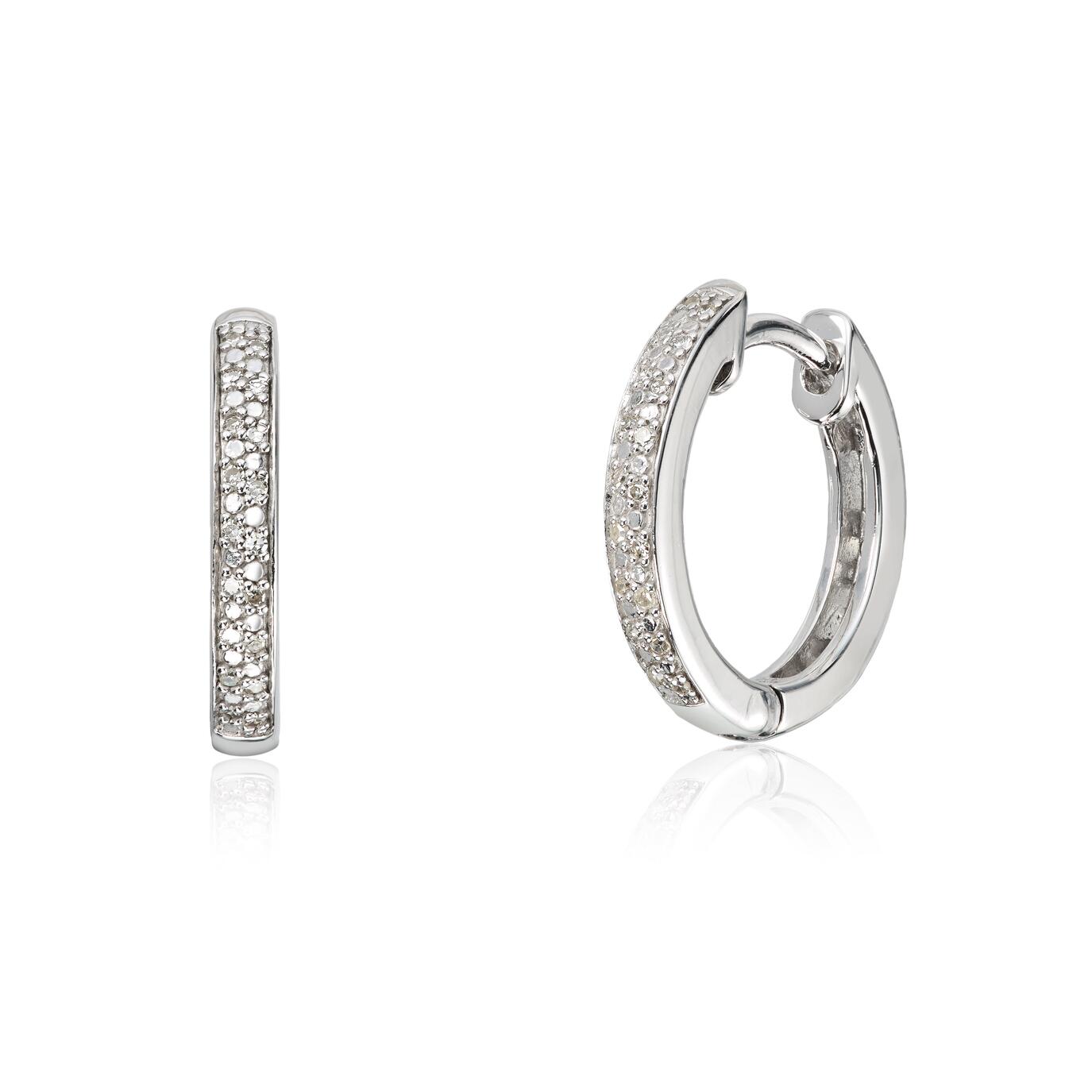 Stilrene øreringer i 14 karat hvitt gull med glitrende diamanter på totalt 0,054 ct i Wesselton/SI-kvalitet. Med en diameter på 14 mm og bredde på 2,5 mm får du et smykke som er elegant, synlig og behagelig å bruke.