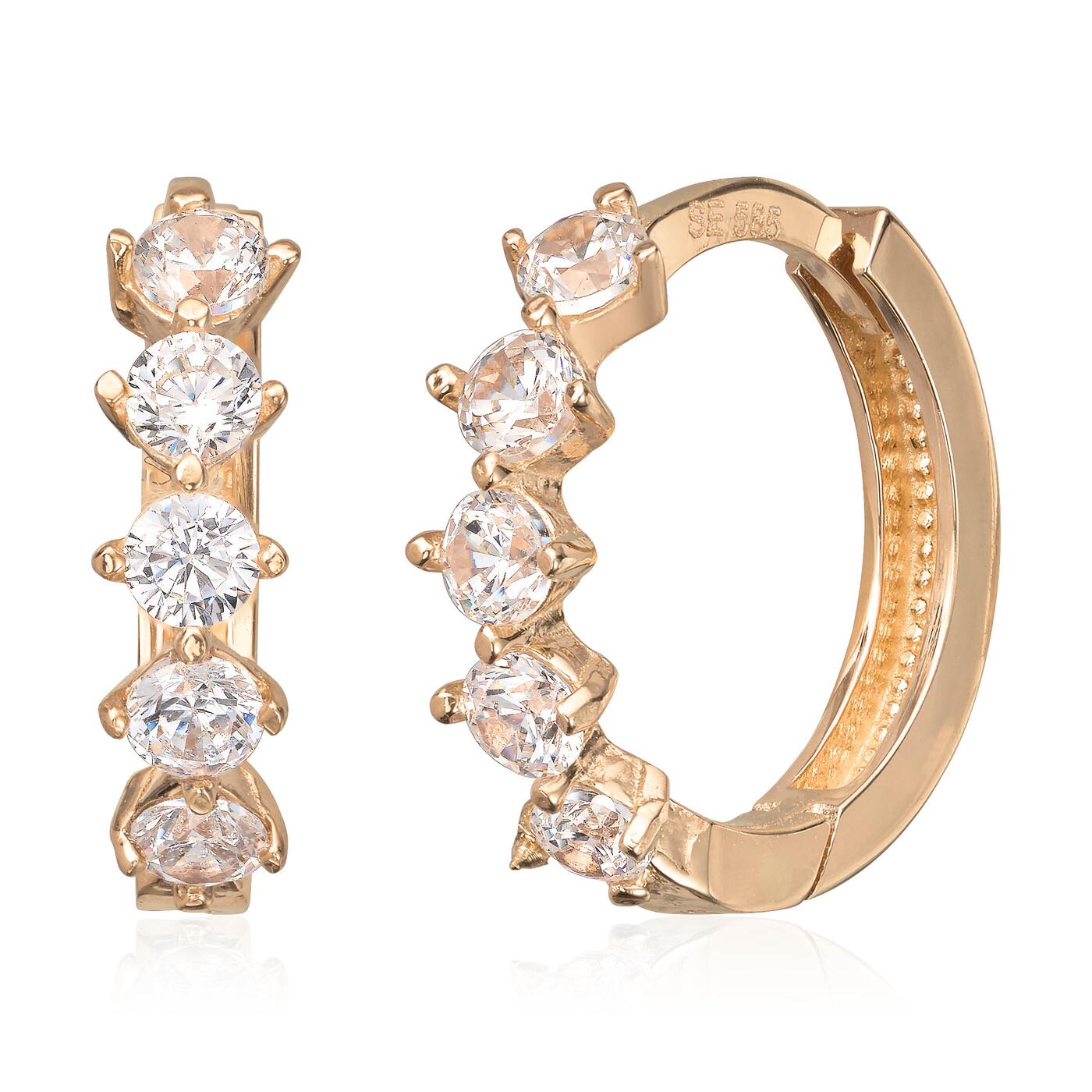 Elegante øreringer i 14K gult gull med hvite zirkoner.