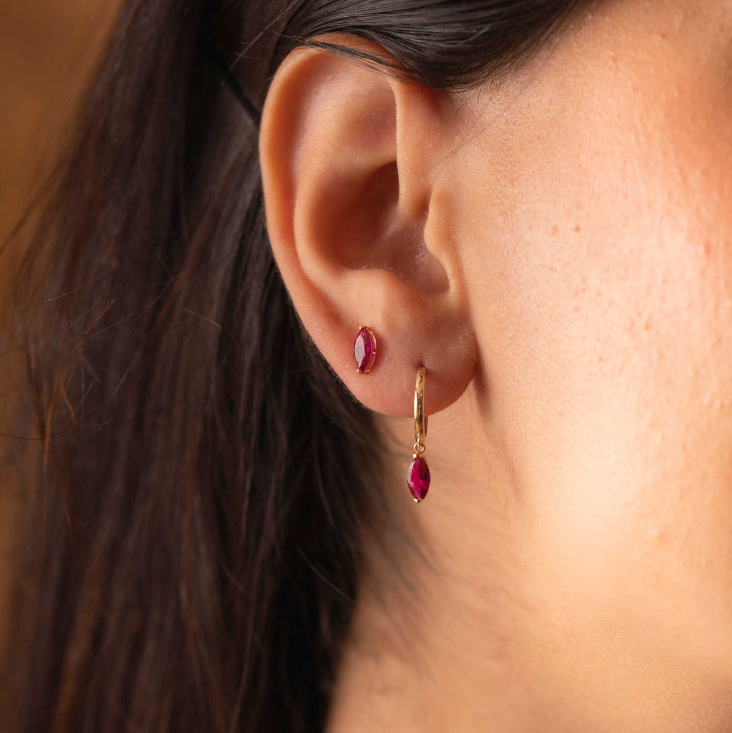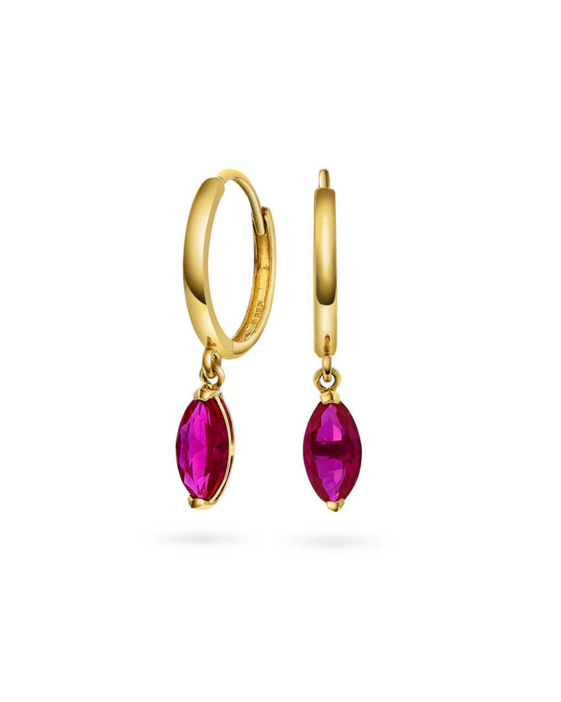 Øreringer i gull med rød zirkonia