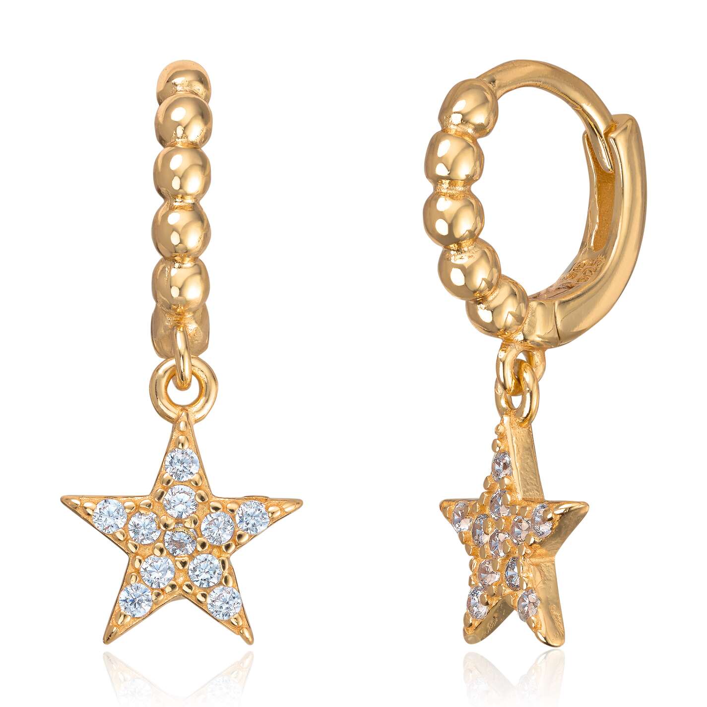 Øreringer stjerne i sølv forgylt med blanke steiner