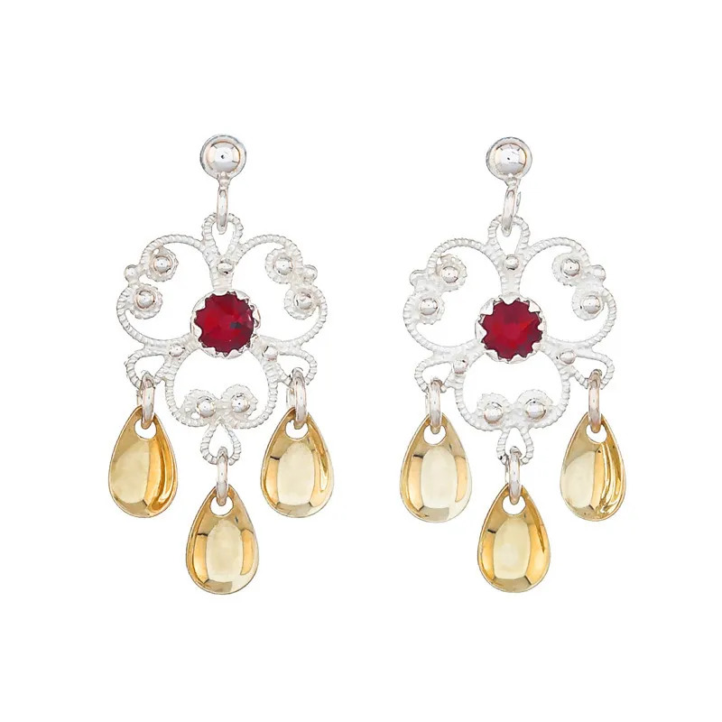 Ørepynt nr. 1, hvit/gylt m/rød sten, for hull