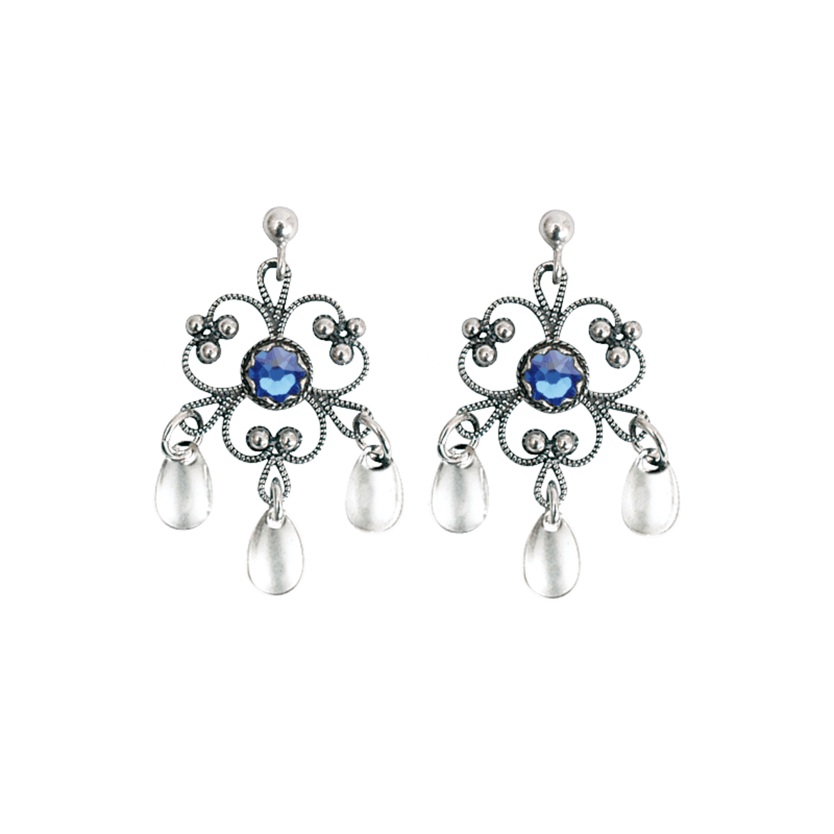 Ørepynt nr. 17 oksydert med blå stein