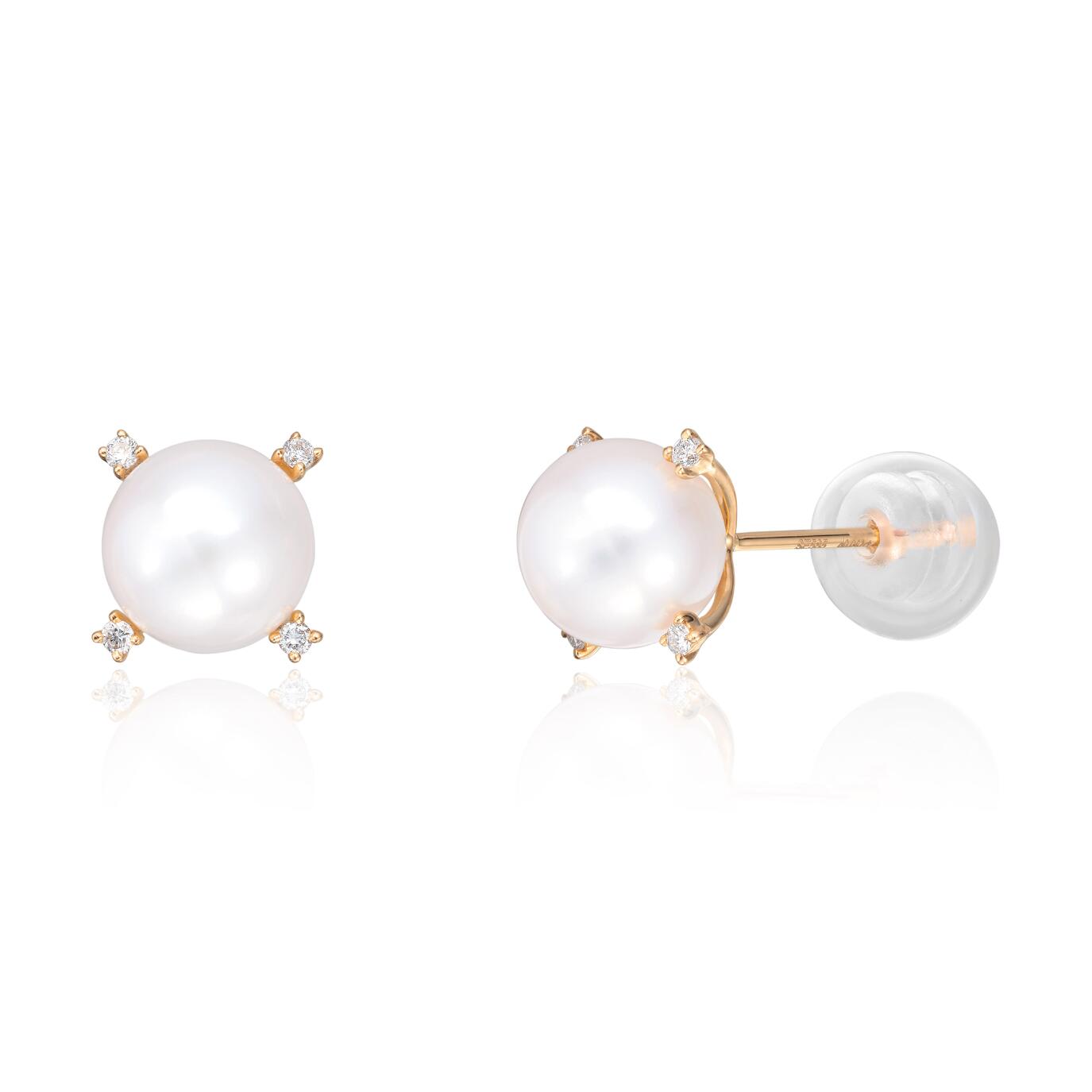 Perleøredobber i gull, 0.08ct Diamant – 7,5 mm