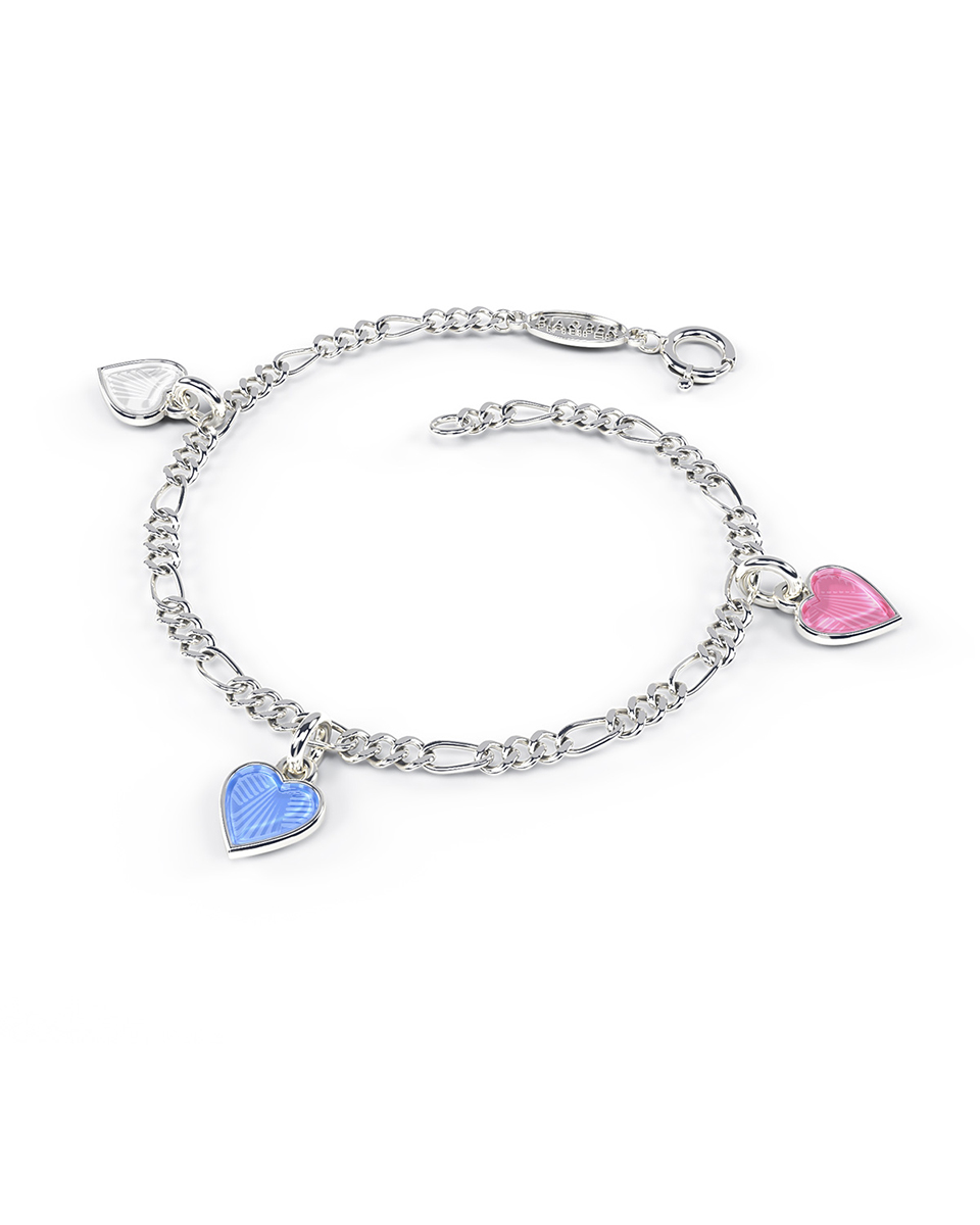 Pia & Per – Charms-armbånd i sølv – Rosa/ hvite hjerter