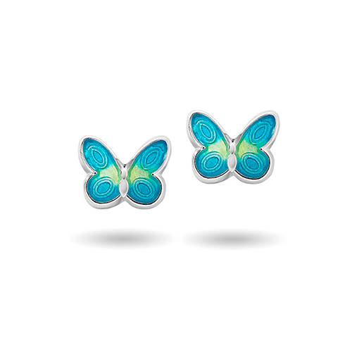 Pia & Per – Ørestikk i sølv – Turkise sommerfugler