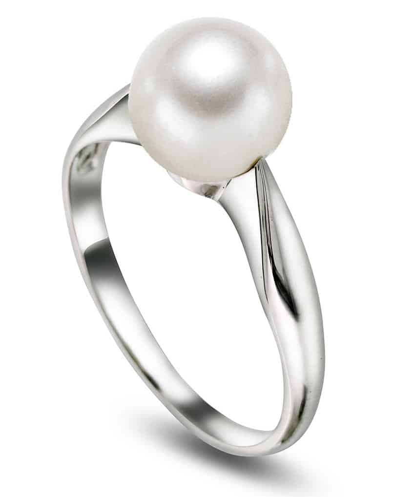 Ring i hvitt gull med kultivert ferskvannsperle
