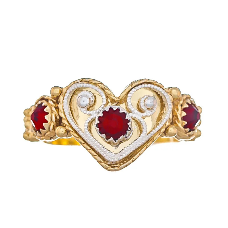 Bunadring nr. 39, lysgylt m/røde steiner