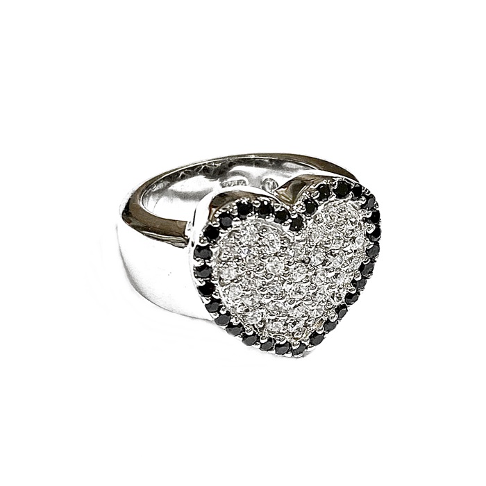 Ring i sølv rhodinert med grønn og hvit CZ