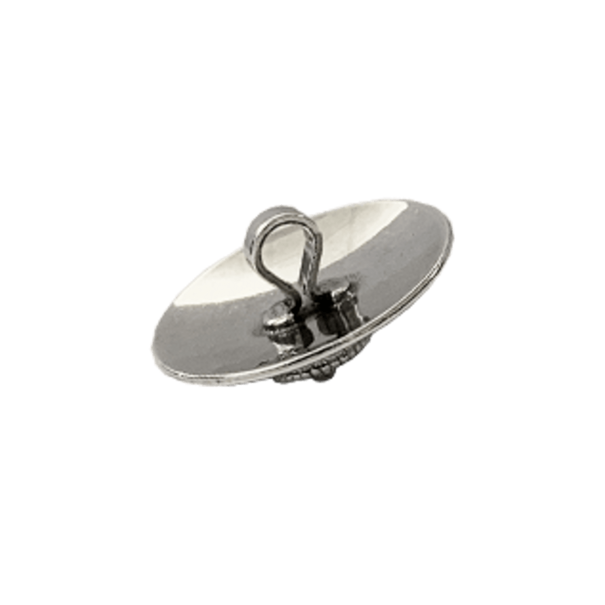 Liten flat knapp med filigransmønster, 15 mm stor.