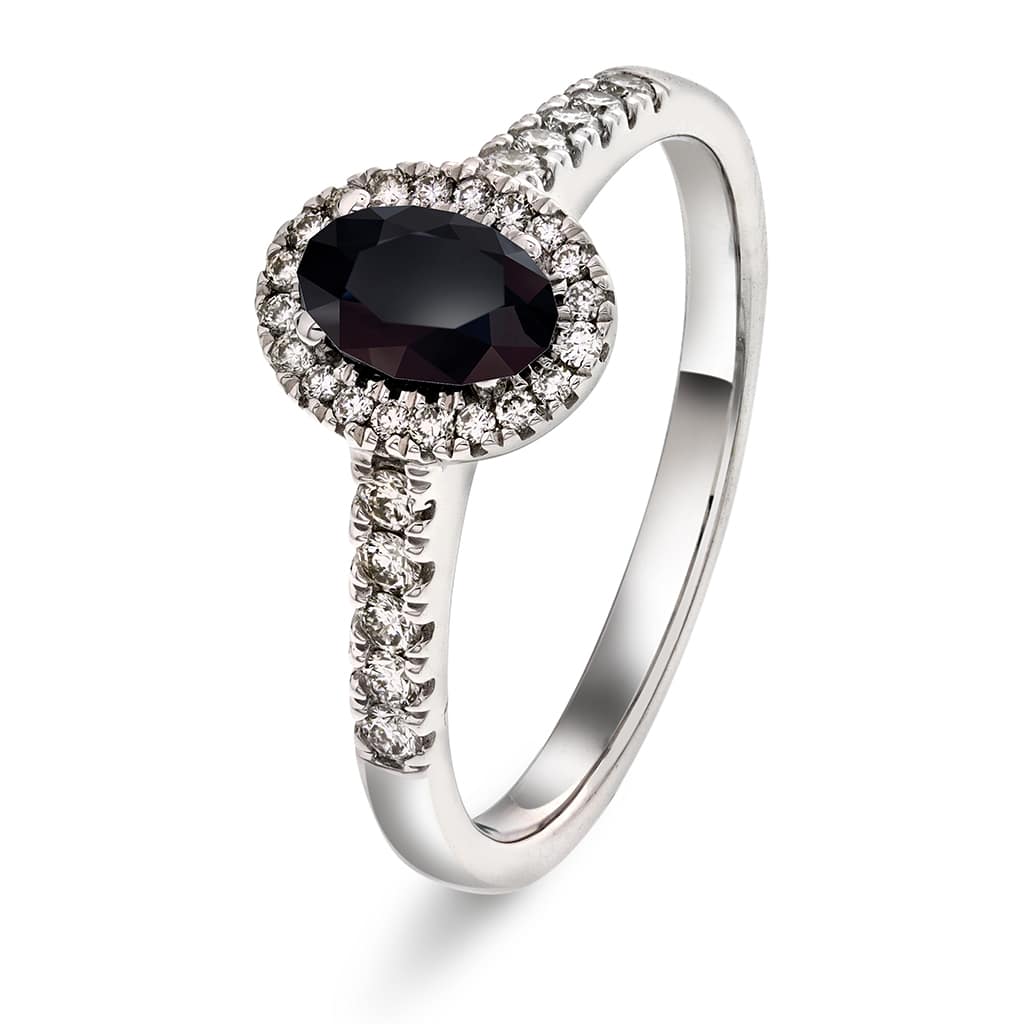 Rosettring i hvitt gull, Spinell og Diamant 0.25ct ((WSI)