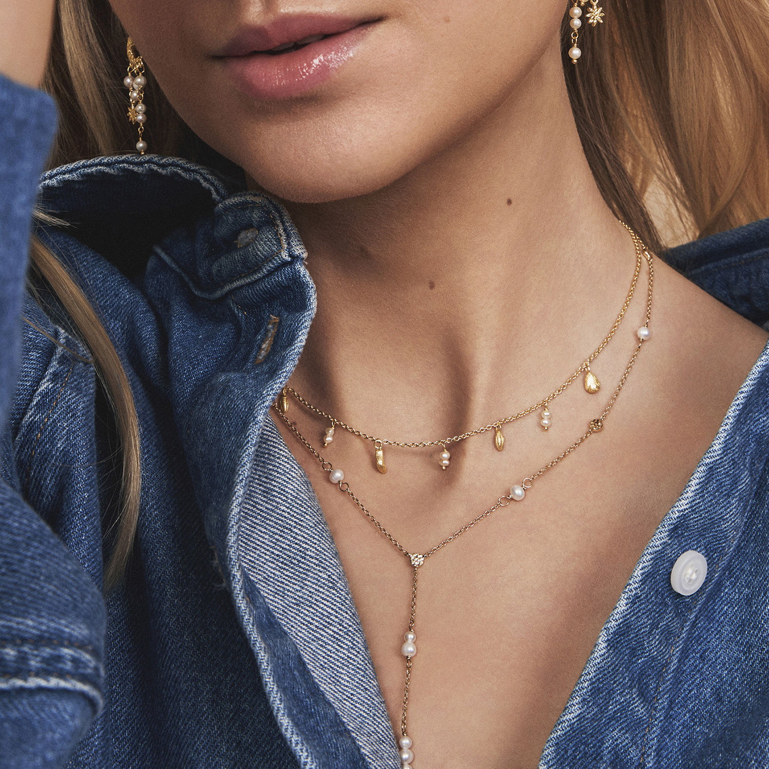Seashell smykke i sølv med perler