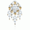 Rosesøljebunn på 6,5 x 10,8 cm med heng. Hengene er av skåler med filigransdekor og filigranspartier hengende i skålene.