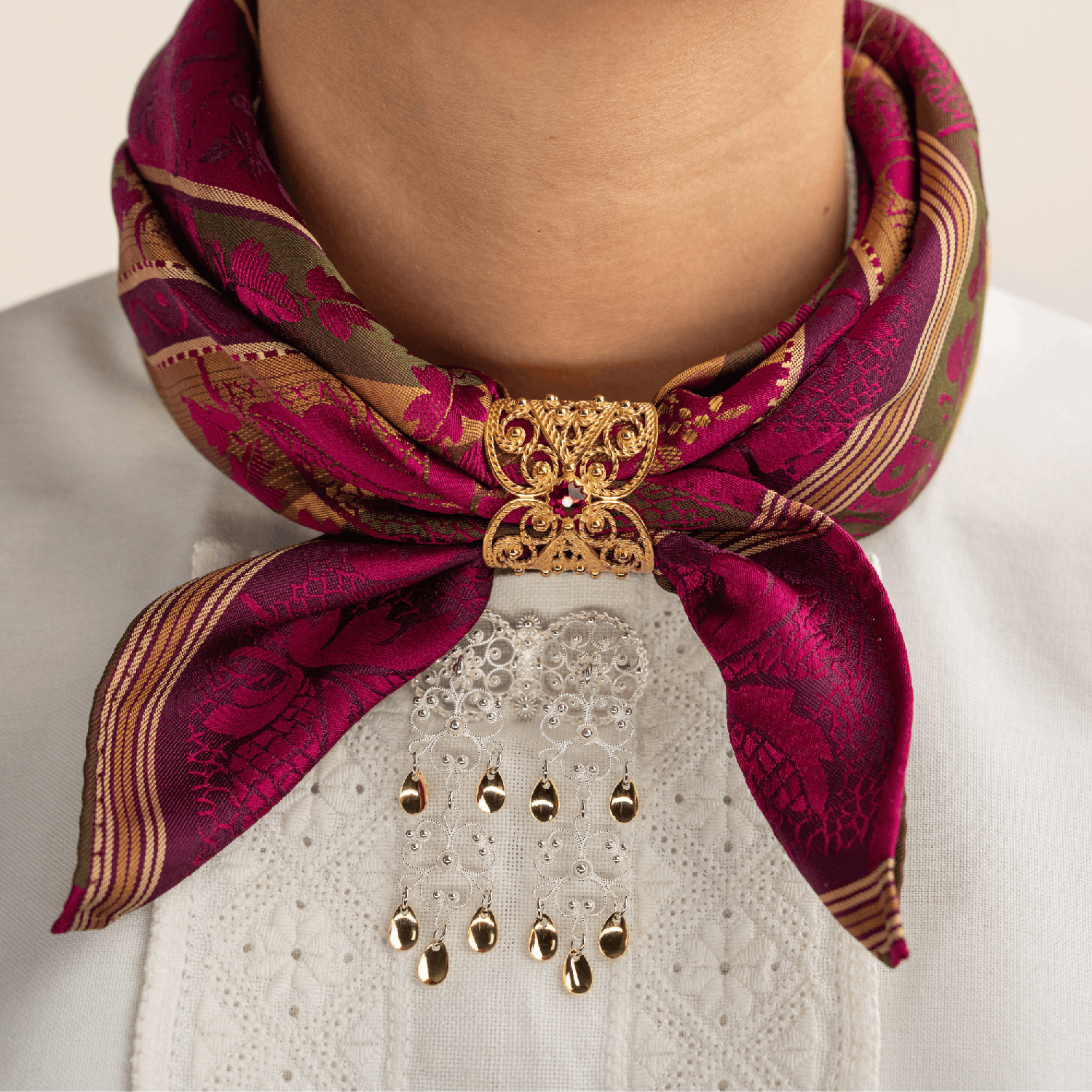 Skjerfring med stein og filigran, Forgylt