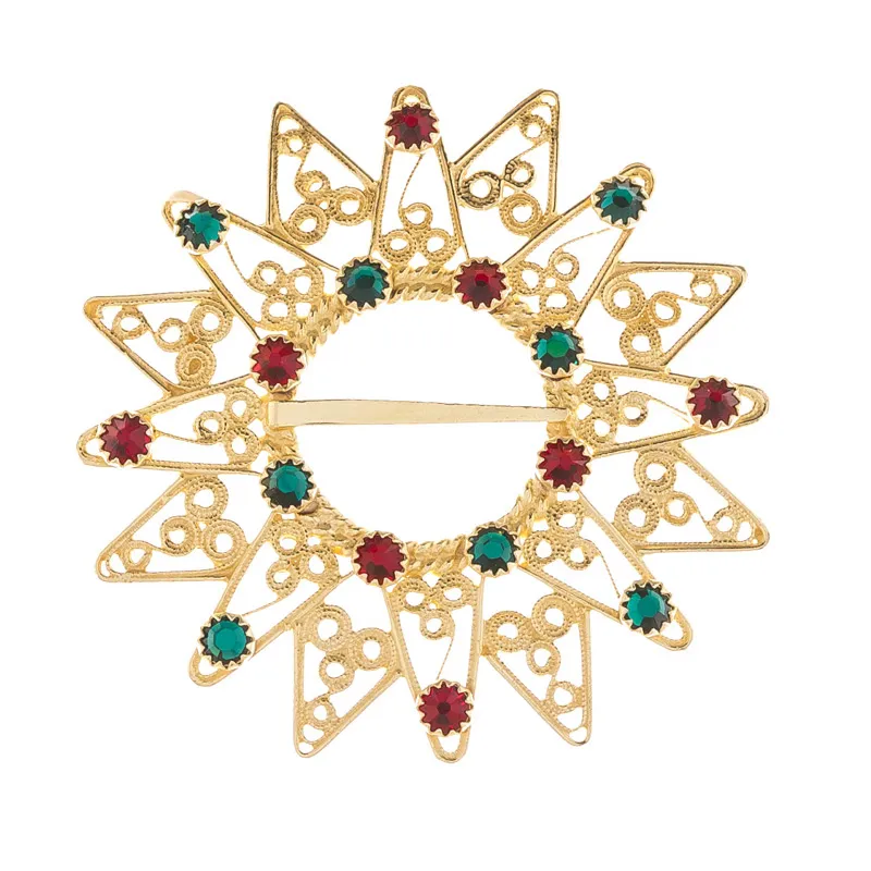 Sølje nr. 200, forgylt m/røde og grønne stener