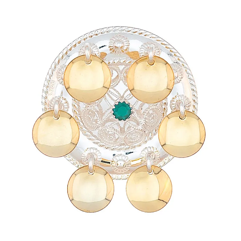 Barnesølje nr. 31, hvit/gylt m/grønn sten