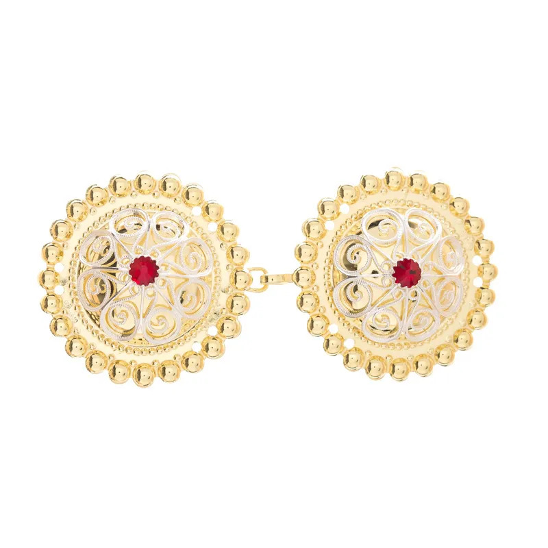 Hekter nr. 43 til skinnbelte lys forgylt med rød sten