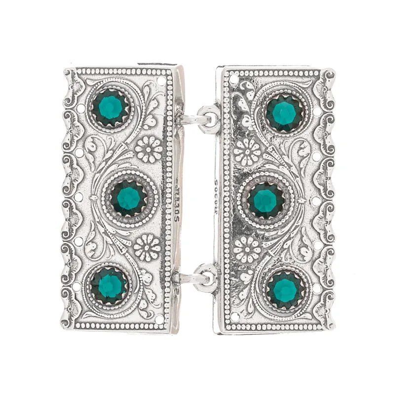 Beltespenner nr. 47 med syhull oksydert med grønne steiner