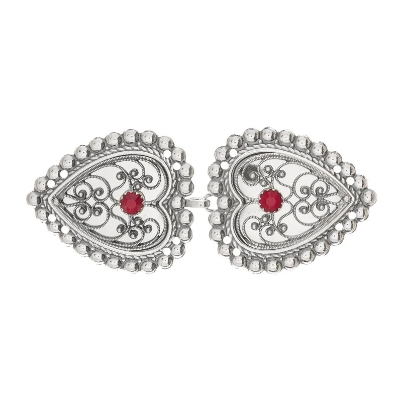 Hekter nr. 36 oksydert med rød stein og syhull
