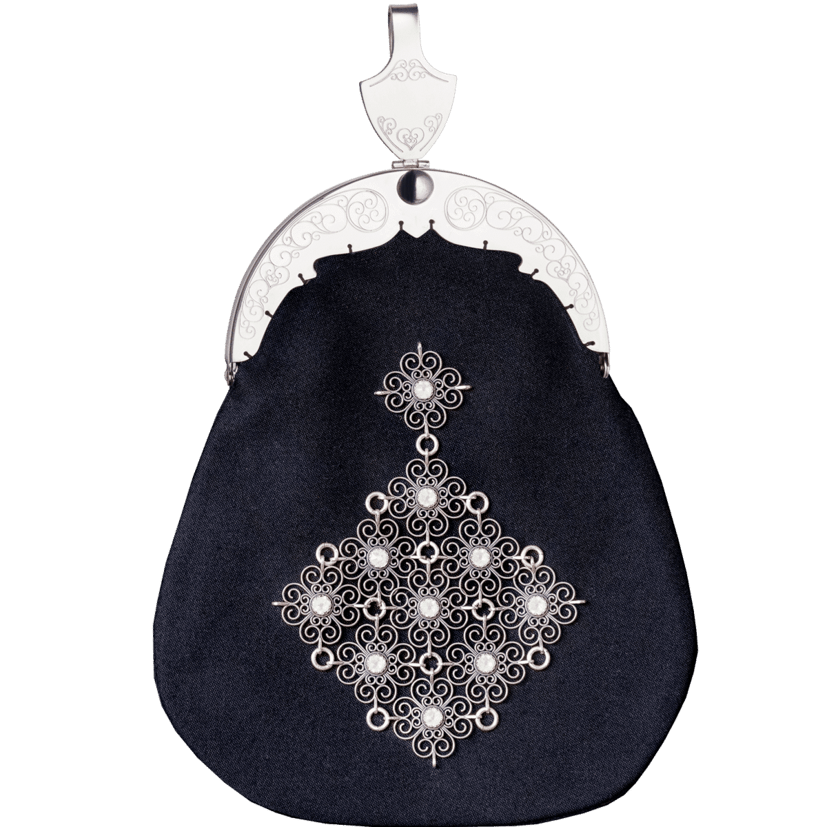 Veske med veskepynt filigran, med kvit stein, oksidert