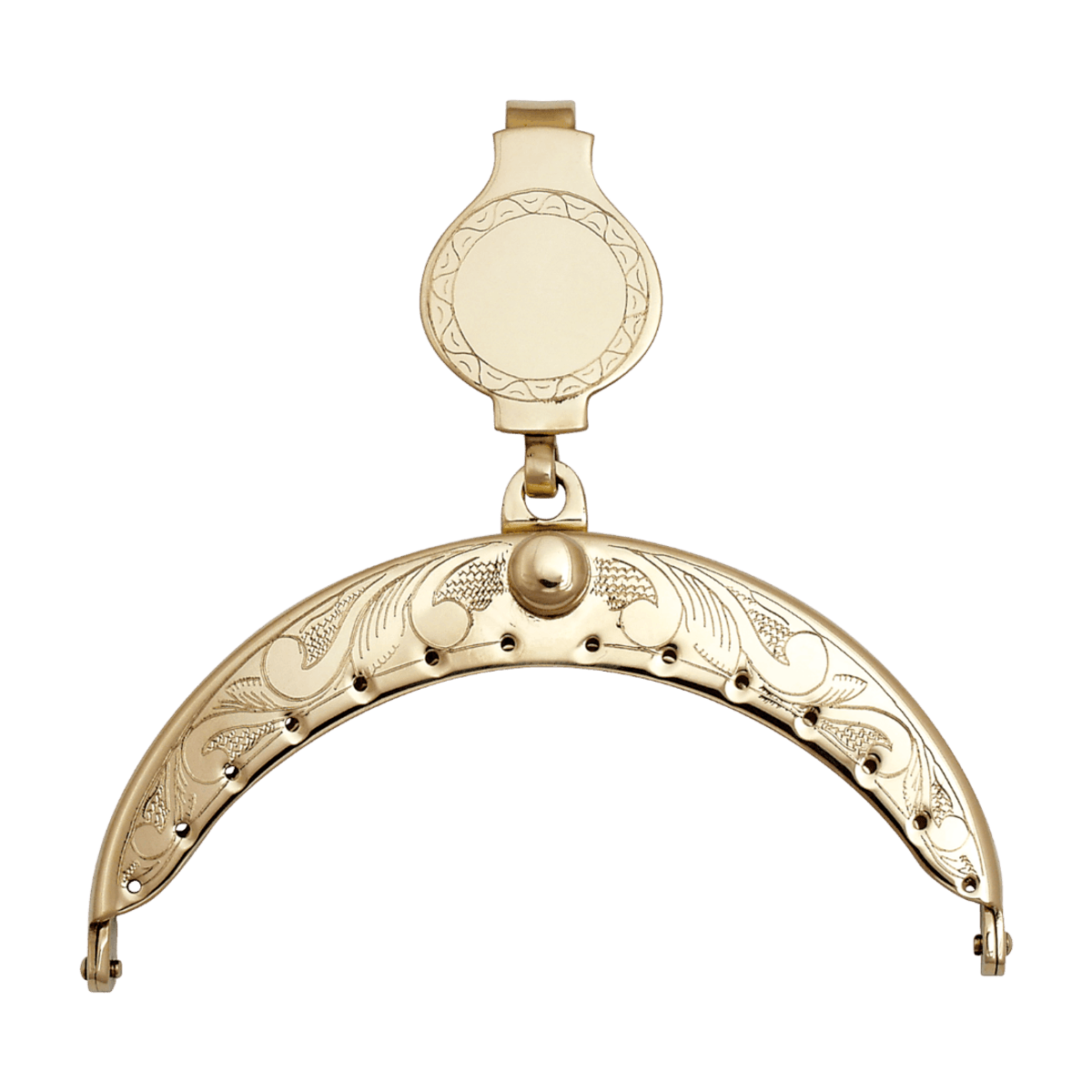 Veskelås støpt i messing. Helt etter gammel tradisjon. 13,2 cm bred.